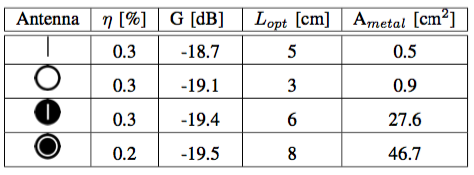 antennas (from 3 to 6 cm for loops and from 6 to 15 cm